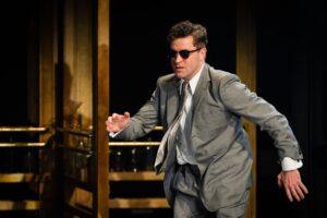 Ewan Wardrop is the bemused and put-upon Roger Thornhill, suitably suave and dapper in a tailored grey suit as he goes through the wrong revolving door as it were and finds himself in the strange, clandestine world of Cold War intrigue. Patrycja Kujowska is the colourful vamp, Eve Kendall who is rarely what she seems yet manages to steal the heart of Thornhill somewhere along the byzantine plot.