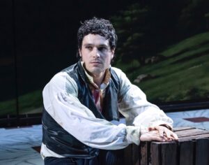 Wickham is at the heart of this story, for initially it seems that on a suitably dark and stormy night he has murdered Captain Denny, who lies dead in the woods on the Pemberley estate. He is undeniably a cad, but can he possibly have killed his best friend? If not him, then who? The bluff Colonel Fitzwilliam (Sean Rigby) and the earnest young Henry Alveston (David Osmond) are both rivals for the affection of Darcy’s young sister Georgiana (Celia Cruwys-Finnigan). Both men were also in the forest that night, so are they implicated? Denny had been seen running towards the cottage of the Bidwell family before he was struck down. Could any of the humble Bidwell family be involved? There are elements of this play that do not convince, but by the interval it has succeeded in creating a mystery that one is eager to see resolved.