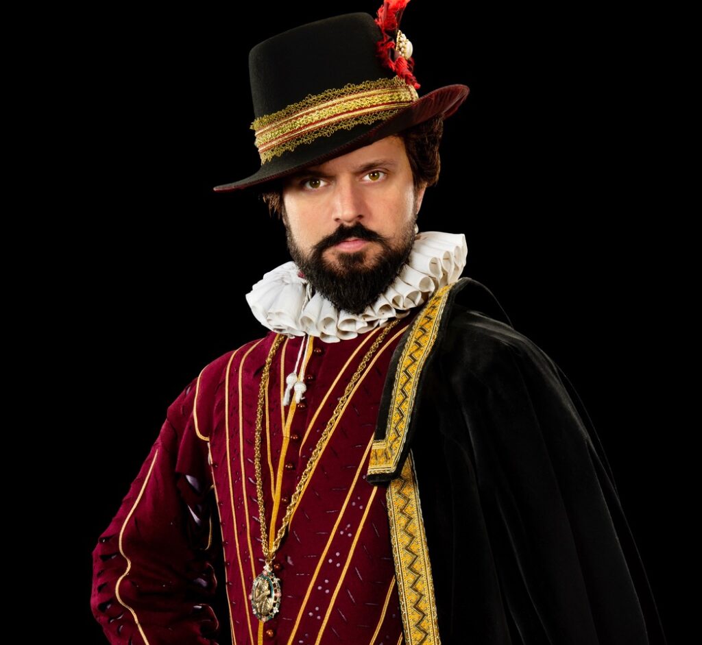 Now in the Tower awaiting trial for treason, supposedly for complicity in a Spanish Plot, Raleigh takes his audience back over his London life by way of laying out his defence. The audience, like the guests collared by the Ancient Mariner, finds itself bewitched by his flashing eyes and sweeping gestures. His whole body seems to jerk as he pounces on some new idea or memory. The latter includes an escapade in the mouth of the Orinoco and his disappointment at being given charge of the land rather than sea defenses against the Armada – narrated with pithy enthusiasm. The loss of his son in action is the source of great sorrow and anger at events that should have been avoided.
