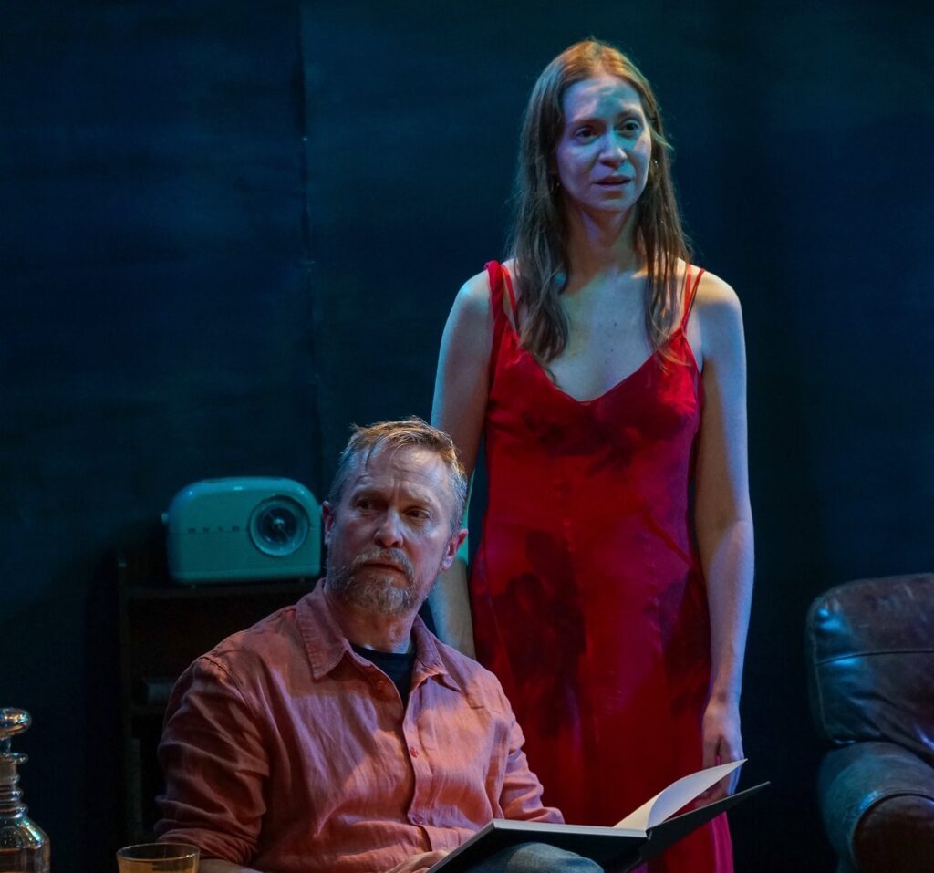 This is what we might call an enigmatic play, at least in the production offered to us by director Janine Wunsche. Casting around I found myself at various points musing as to whether it was perhaps a play about love pure and simple, or maybe the male versus female power dynamic, or again whether some style of creepy sex offender was under the playwright’s magnifying glass. One with a genetic or family disposition to lure women to a remote riverside shack for a spot of sea trout fishing and a tumble in the sack. Quite what the seduction process might have been is a matter of bemused speculation as the play begins in medias res with The Man – as he is styled – (Ciaran Corsar) in the process of entertaining what we later learn is one of a number of..’subjects’, shall we call them politely.