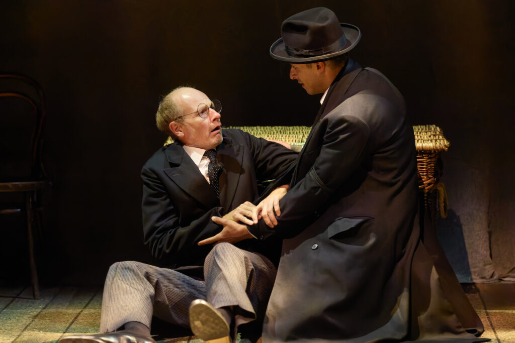 The setting is the Theatre Royal itself, its stage featuring little more than a chair and a large wicker costume box. Lawyer Arthur Kipps (John Mackay) enters, reading from a folder. His manner is nervously hesitant and he mumbles incoherently. He is loudly interrupted from the stalls by a confident assertive young man who, we learn, is an actor (Daniel Burke) who has been engaged by Kipps to help him brush up his oratorical skills so that he will be able to deliver his tale to friends and family. It is a story of so horrific an experience from his distant past that it still haunts him dreadfully. He needs to tell it to exorcise its memory. They rehearse the tale, with The Actor taking on the role of Arthur, and Arthur himself playing all the other parts.