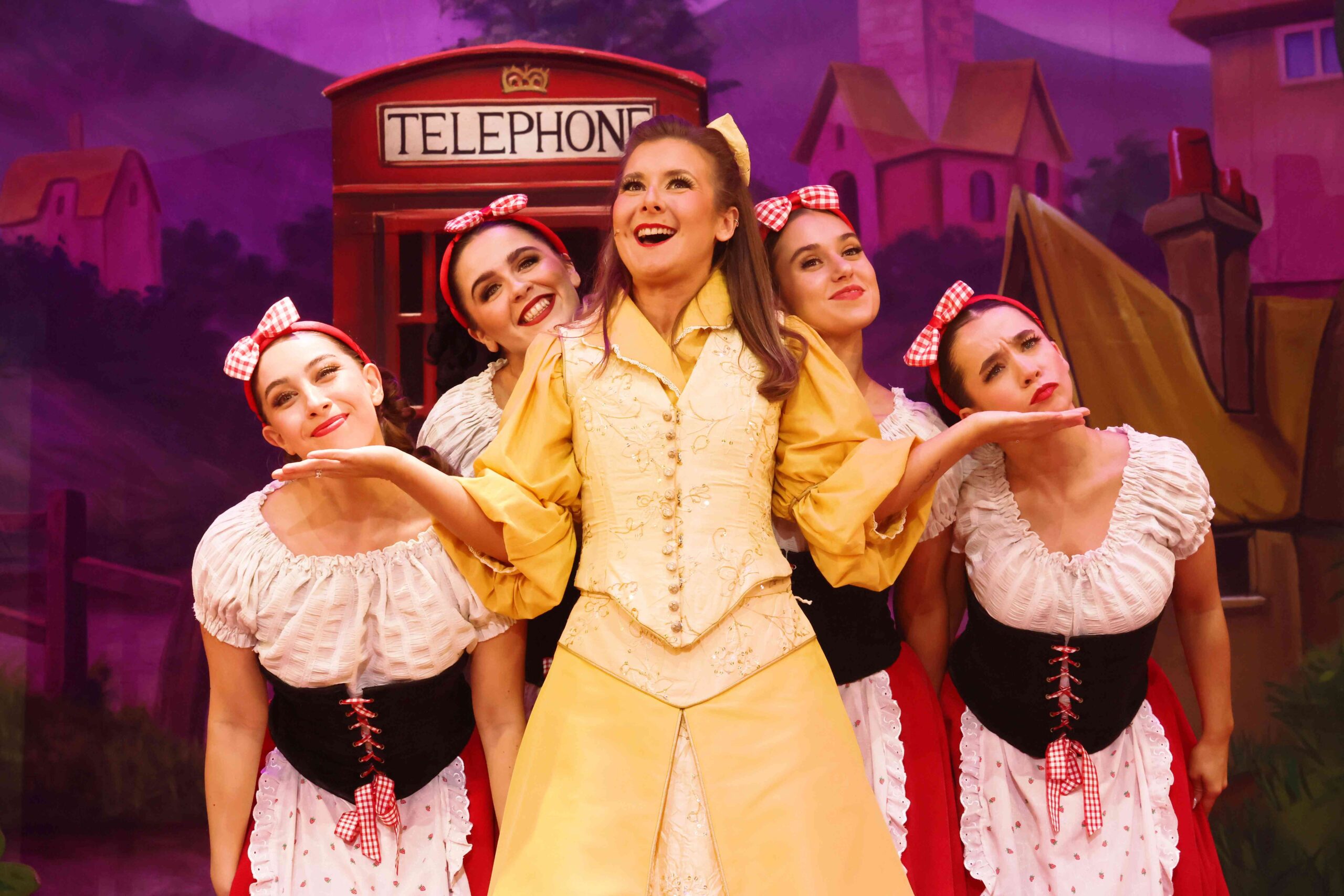 Director Paul Milton has pulled this show together admirably with less than two weeks’ rehearsal time, scarcely believable judging by the many strengths of tonight’s impressive opening show, even with a sprinkling of scripted “ad libs”. Yes, the show is over-long, pushing three hours including the interval, but it has some neat tricks and clever touches up its flamboyant sleeves, most notably a 3D party piece which, whilst not necessarily cutting-edge technology, provides plenty of audience interaction. Boppy, poppy musical numbers featuring a live band and six-piece ensemble of dancers keep the pace moving along and the energy levels high, while further support is lent by Ella Holt as a spirited fairy and by another Malvern favourite, Nick Wilton, as Dame Dot Trott. Talented children from a local dance school provide the cuteness too, seemingly unfazed by their adult co-stars as they strut their stuff nervelessly alongside them on the stage.